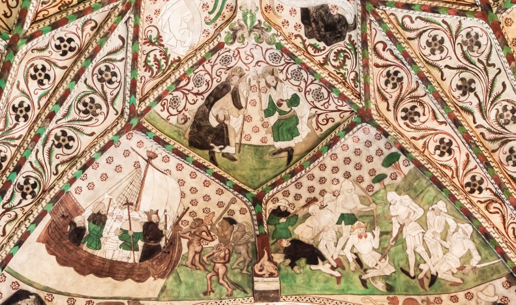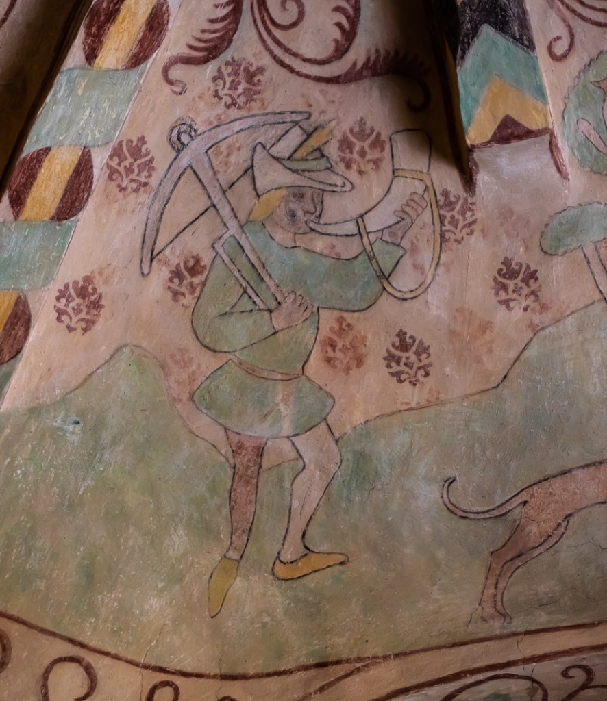 Albertus Pictor pryder gärna väggar och tak med dessa groteska figurer, demoner/fabeldjur.
