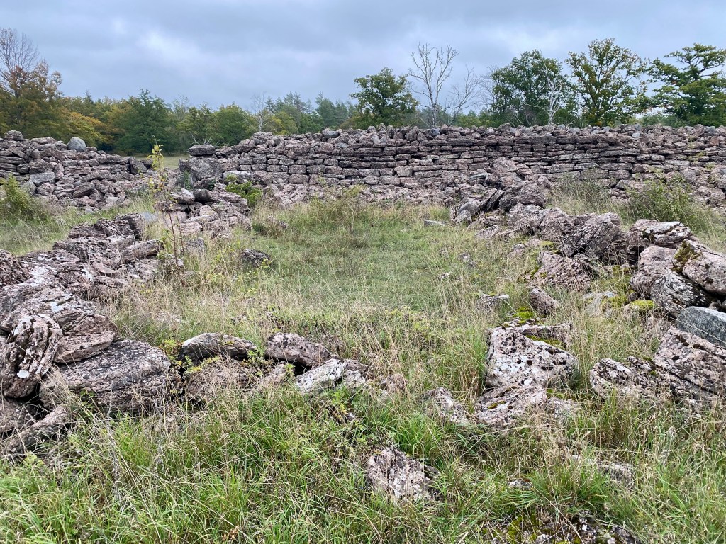 En av portarna med bevarad kallmurad portöppning av huggen kalksten.