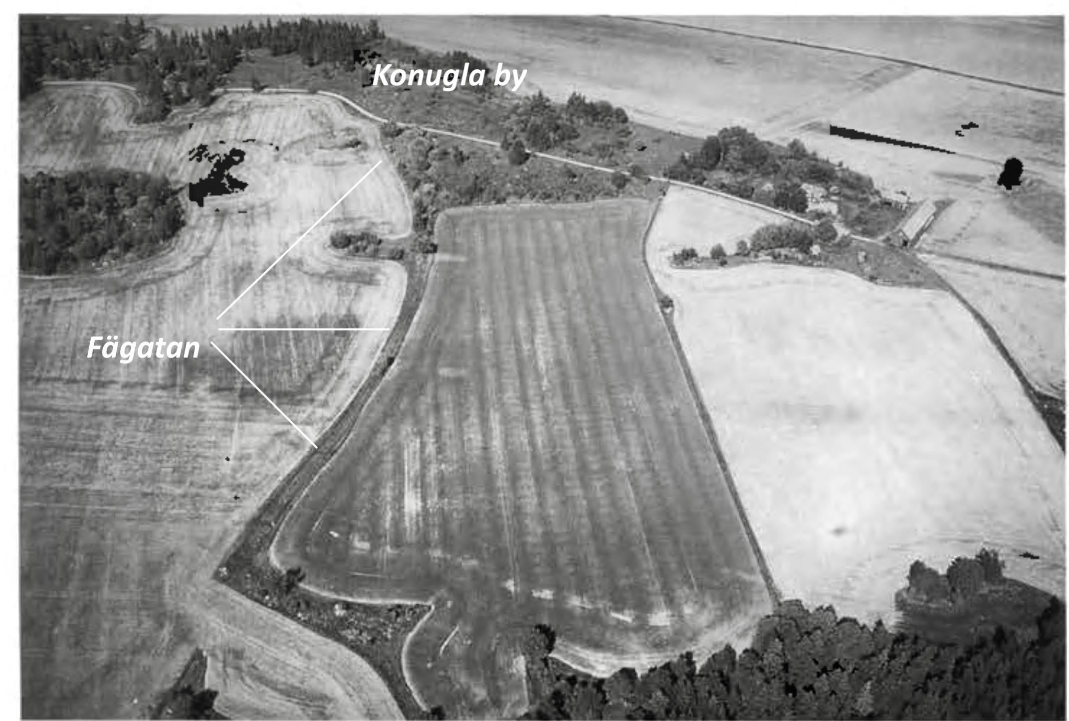 Fägatan skapades under vikingatid dvs mellan 824 e.Kr och 1190 e.Kr. Utgrävningar av delar har kunnat fastslå det. Fägatan har varit en del av gården Konuglas mark.