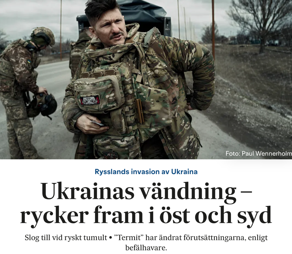 Om ”Ukrainas vändning” (för vilken gång i ordningen rapporteras Ukrainska segrar, ändock tar Ryssland Ukrainsk mark trendmässigt allt sedan den speciella operationens början).