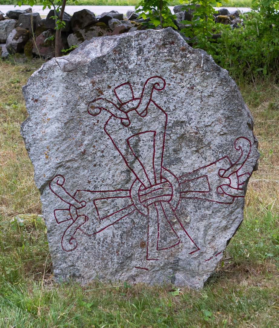 Runskriften och ornamentiken färgförstärkta i datorn för ökad tydlighet.
