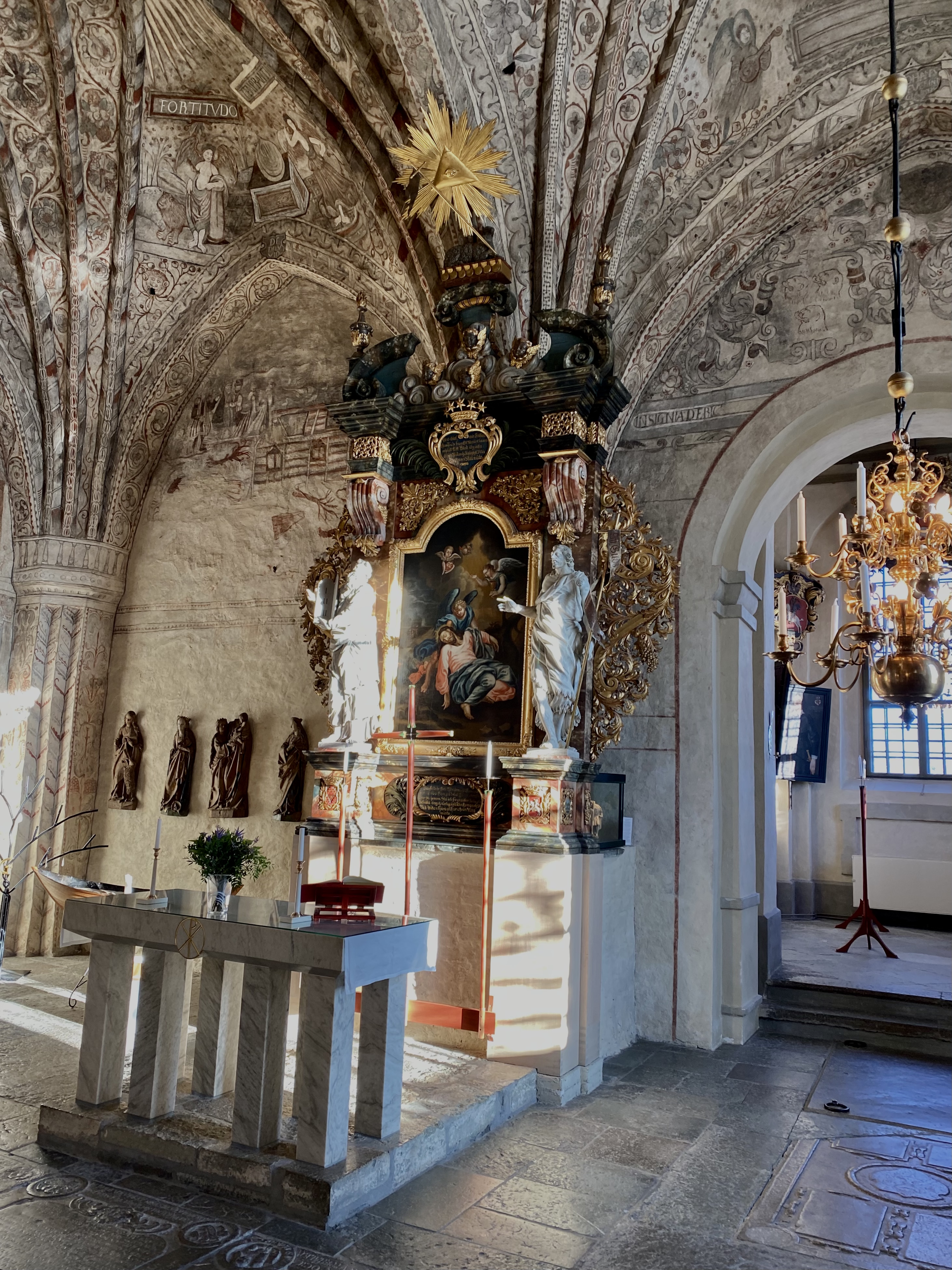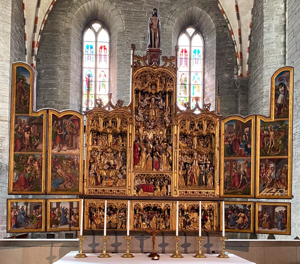 Altartavlan är från 1600-talet och nordtysk.