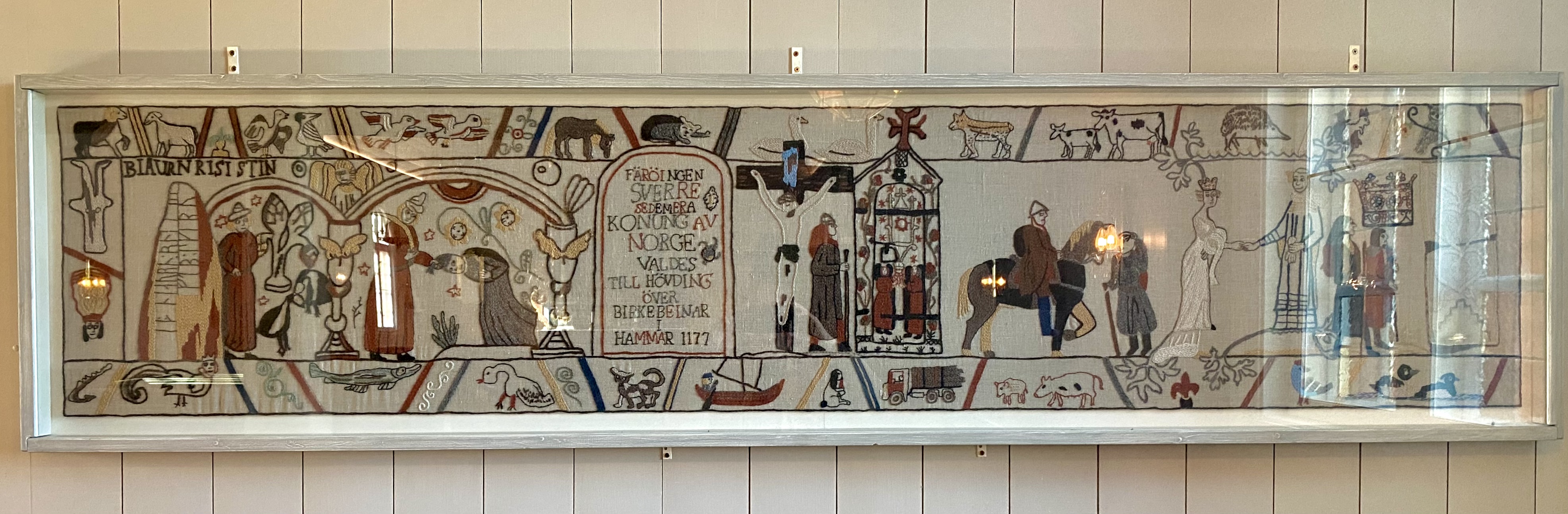 Det är faktiskt ganska vanligt att man i samband med ombyggnader och renoveringar av medeltida kyrkor hittar inmurade runstenar. Runstenar som visar asatron kan ha murats in för att motarbeta och ”förnedra” asatron. Denna gång har dock en kristen runsten med ett kors hittats i rasmassorna. Den korsristade stenen hittades vid schaktning i koret. Vi vet ju inte om runstenarna är samtida men den utvecklade ornamentiken på båda talar för samma runristare. I så fall har en kristen sten lagts som grund- och entrésten. De båda stenarna restes på sina nuvarande platser hösten 1938.