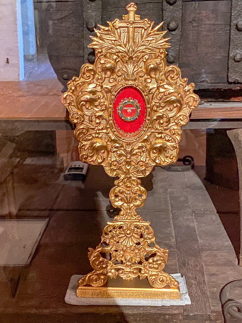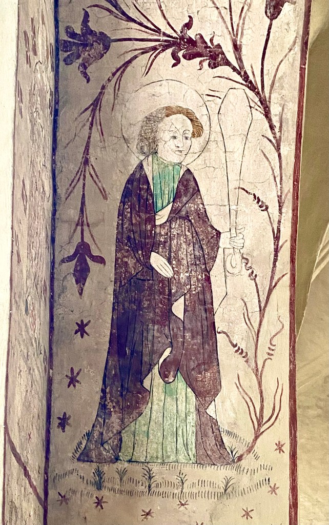 En helgon/martyr med gloria, i detta fall Laurentius på halstret som torteras å det grymmaste. Medeltiden var ingen lekstuga för dem som inte var helt i linje med rådande maktstrukturer, ideologier och bestämmande teologi. Förespråkare för enkönade äktenskap och hbtqia+ ideologi hade med rätta inte blivit långlivade.
