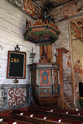 Predikstolen är gjord 1669. Ljudtaket är dock daterat 1650 och har alltså tillhört en äldre predikstol.