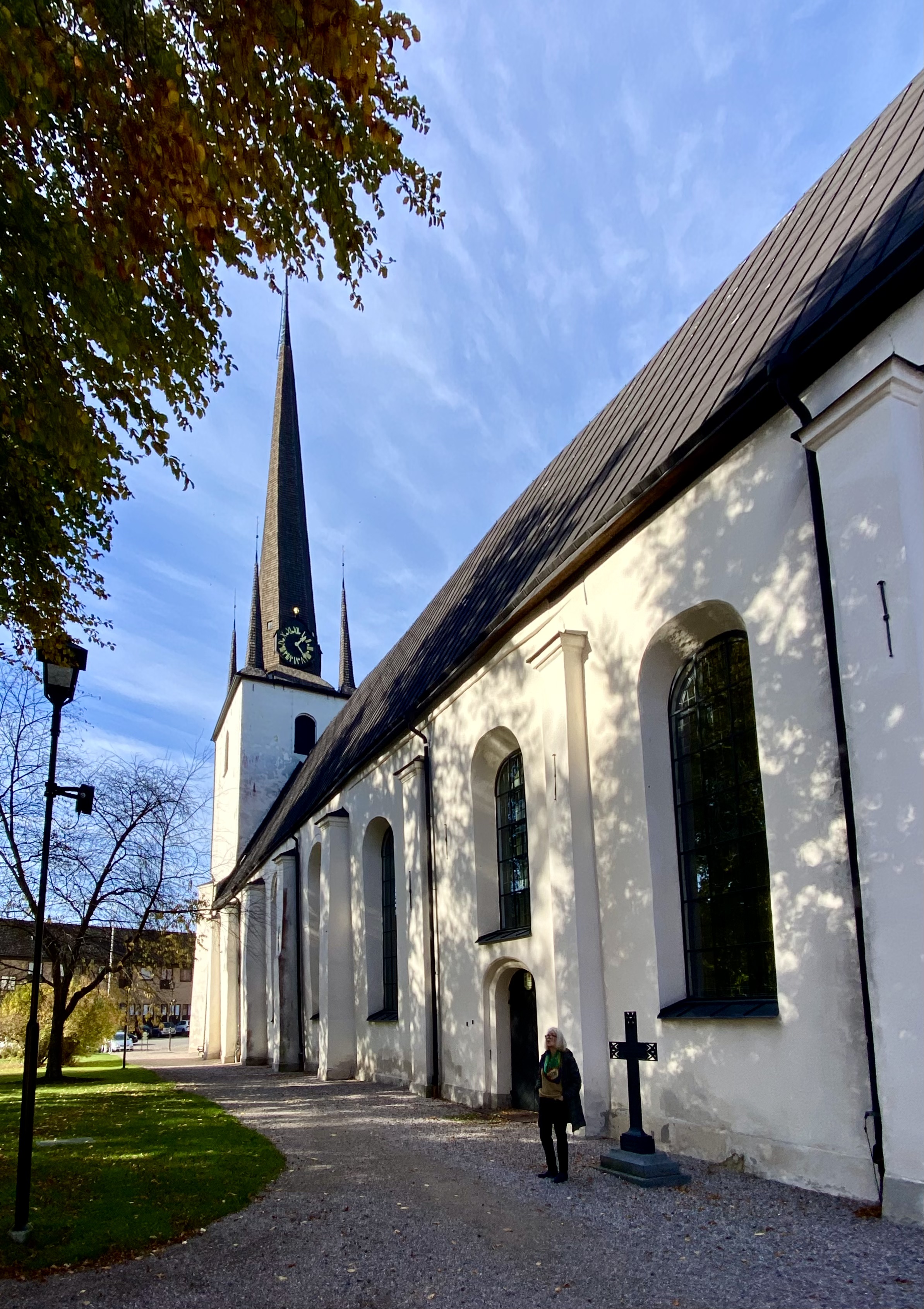Heliga Trefaldighetskyrkans västfasad sedd från Järntorget. Kyrkan är belägen i östra delen av stadens centrum och är imponerande exteriört och inte minst med en magnifikt storartad interiör. Strax till höger i den nuvarande parken låg franciskanerkonventet från mitten av 1200-talet fram till 1527 efter reformationsriksdagen när Gustav Wasa stängde kloster och lade beslag på kyrkornas och klostrens alla värdeföremål som kyrksilver liksom diarier som kom att användes för rikets räkenskaper där delar kan återfinns än idag. Med diarierna försvann och föröddes en flerhundraårig skriven historia i form av klostrens närmast dagliga notiser som redogjorde för vad som sig i riket timat haver. En kulturell och historisk källkatastrof som saknar motstycke.