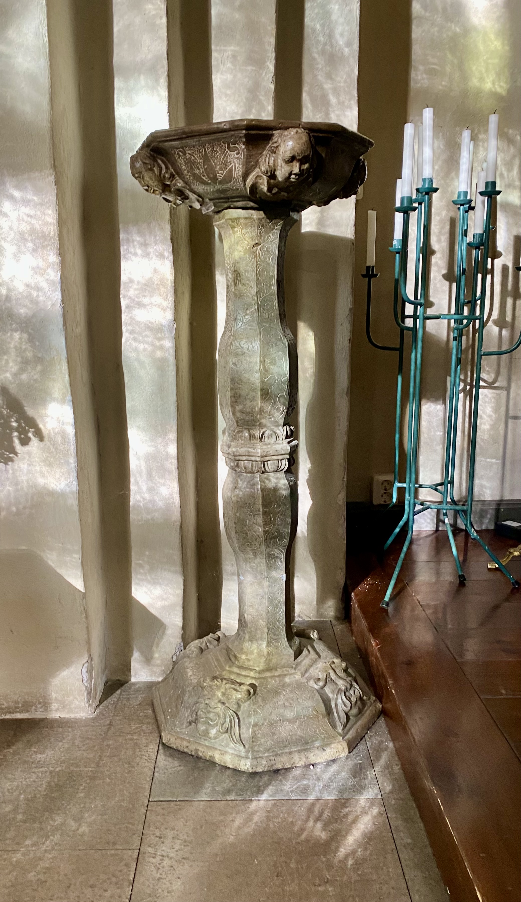 Dopfunt från 1666 Hans Clason Arent Stenhuggare av mörk kalksten i renässansstil.
