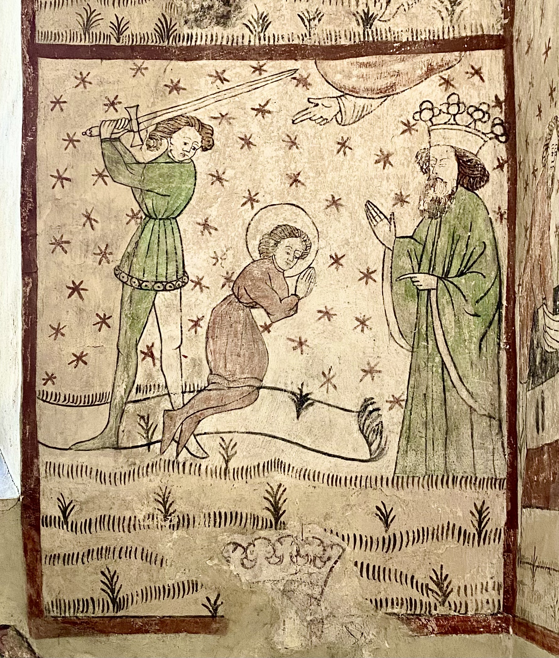 Avrättning med svärd var förbehållen de högre stånden. Här en martyr/helgon som avrättas med svärd synbarligen på kunglig order.