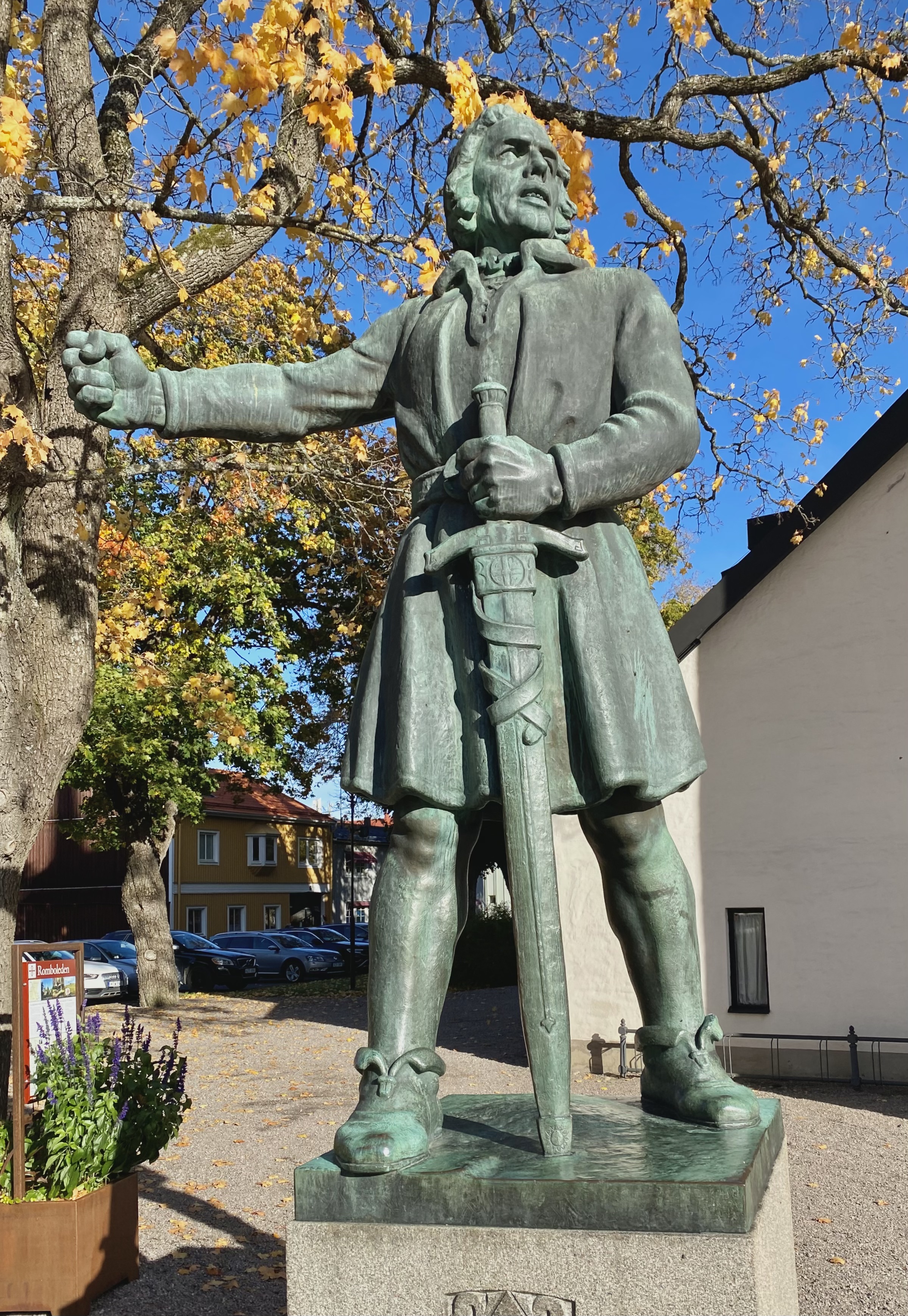 Engelbrekt Engelbrektsson, statyn står utanför kyrkans entré. En ledare vi skulle behöva idag för att undanröja nuvarande maktklaner och få stopp på deras systematiska förödande och förstörande av Sverige.