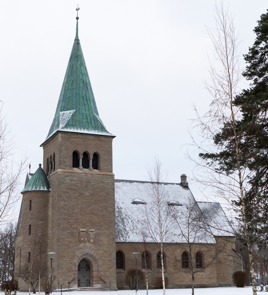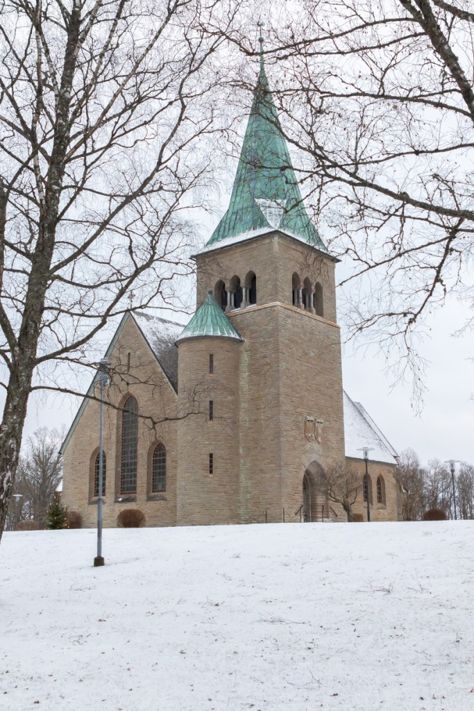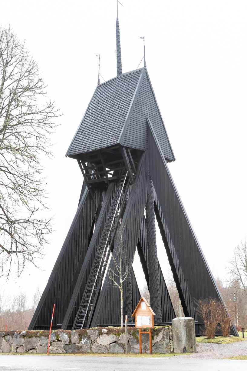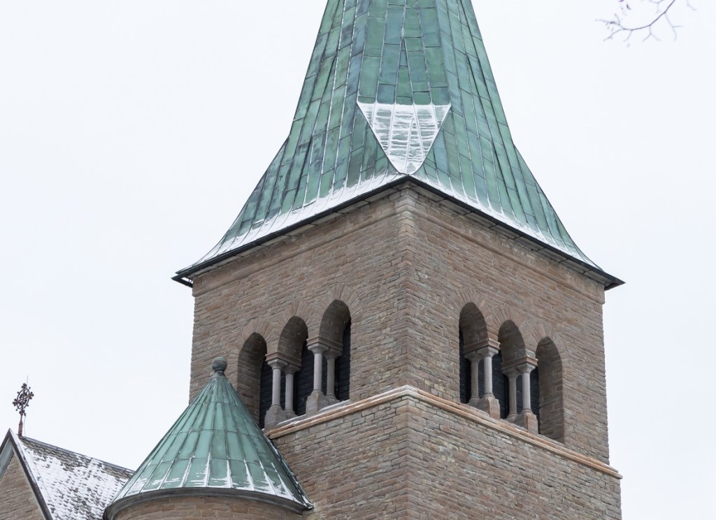 Tornet har en missklädsam, som jag ser saken, kopparklädd huv som kröns med förgyllt kors på kula. Ser närmast ut som en ölbryggarpanna.