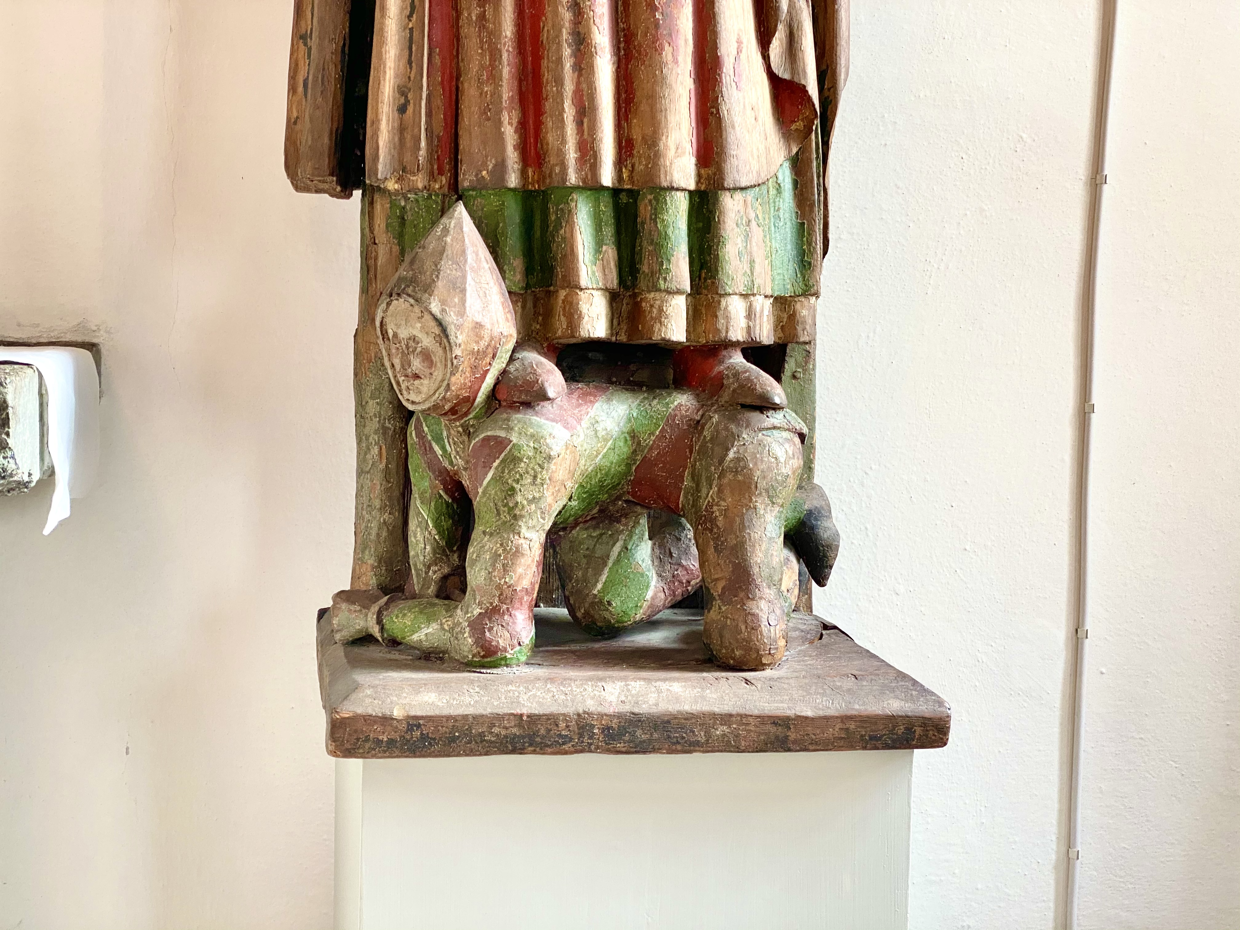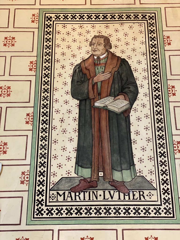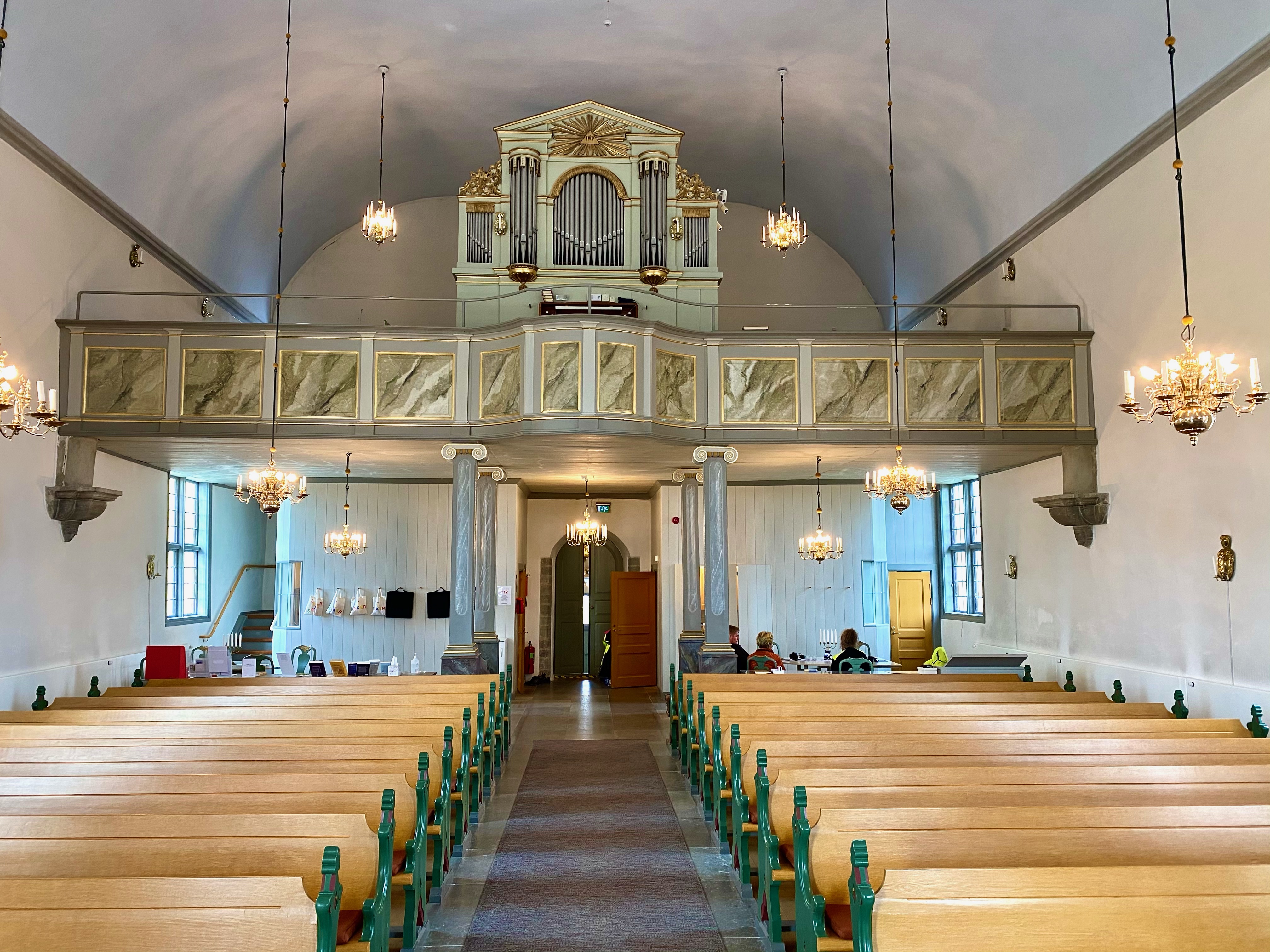 Tornet har en missklädsam, som jag ser saken, kopparklädd huv som kröns med förgyllt kors på kula. Ser närmast ut som en ölbryggarpanna.