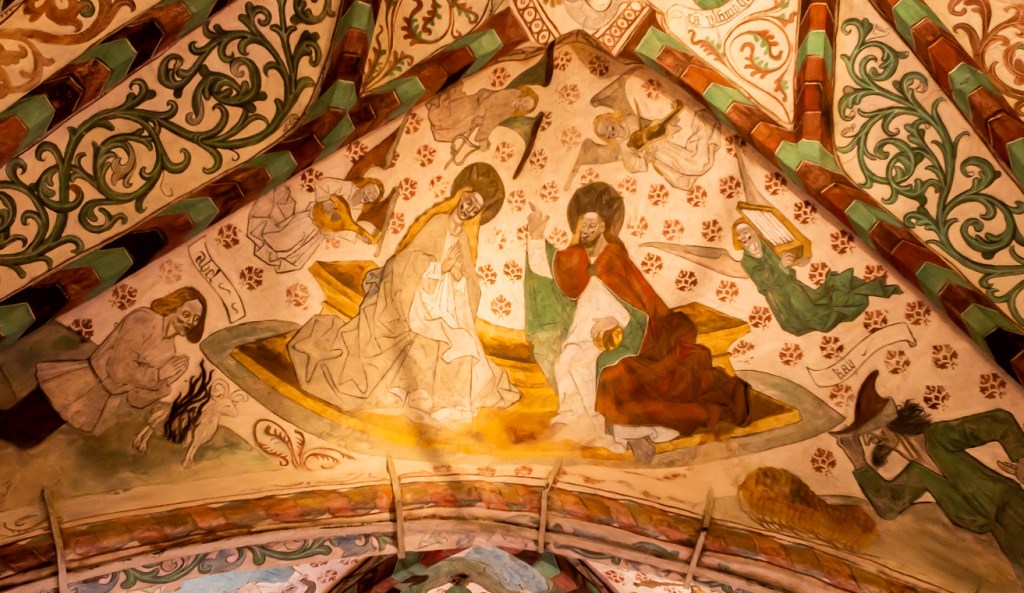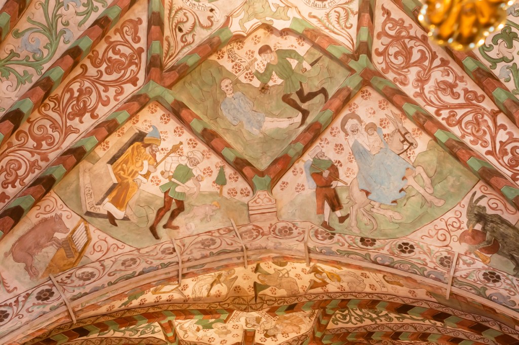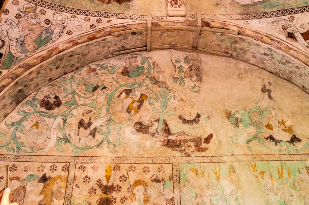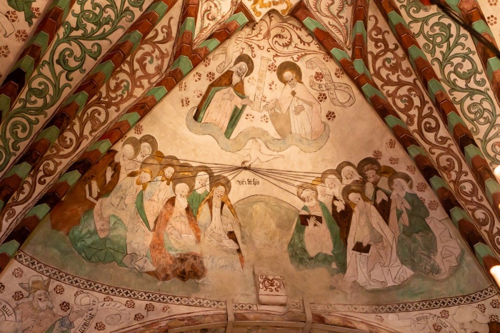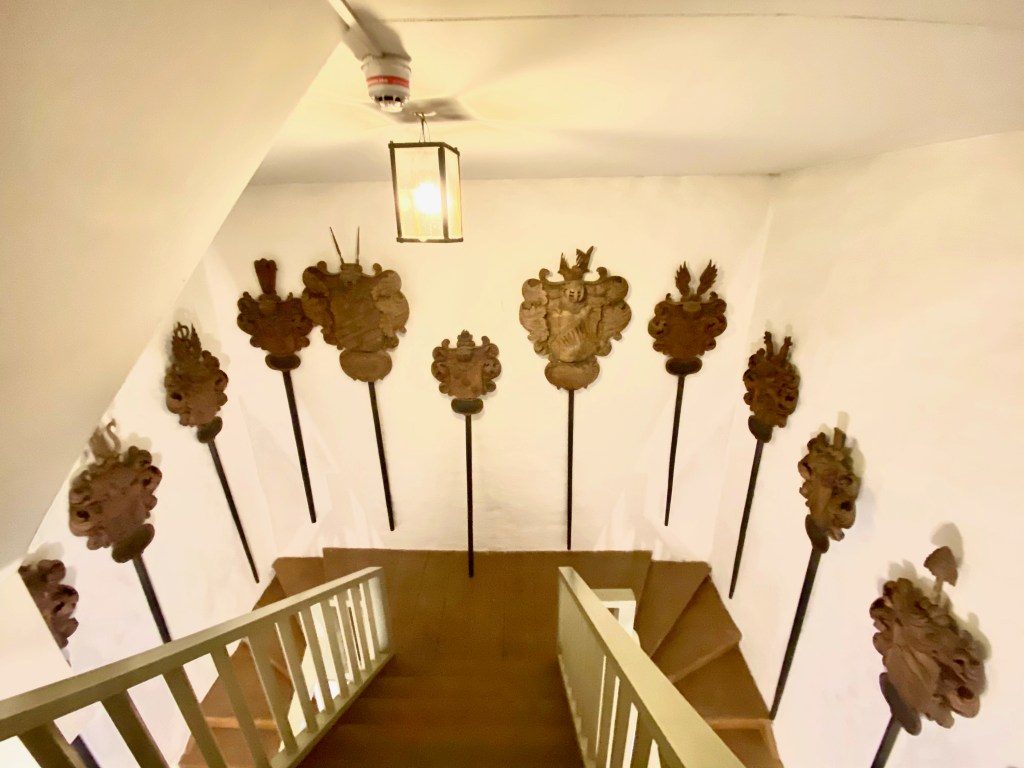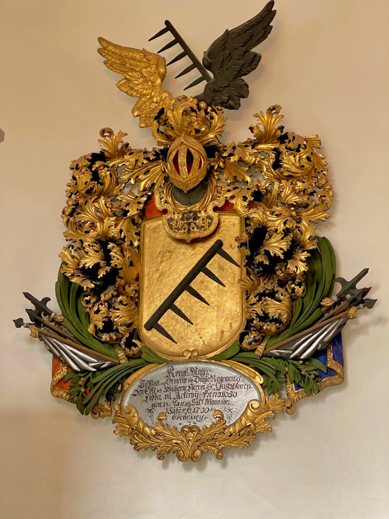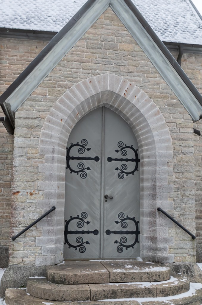 Västtornets port visar tydliga tecken på medeltida ursprung (kan vara 1100-tal) med det oerhört vackra och dekorativa smidet som förstärker porten.