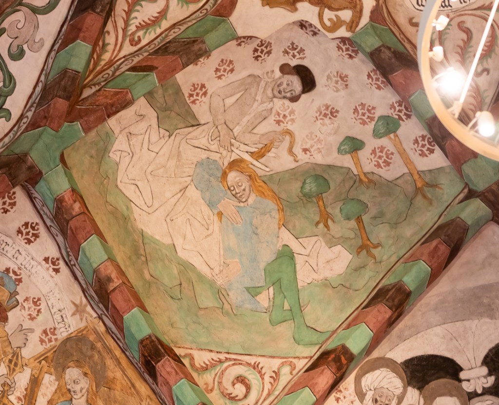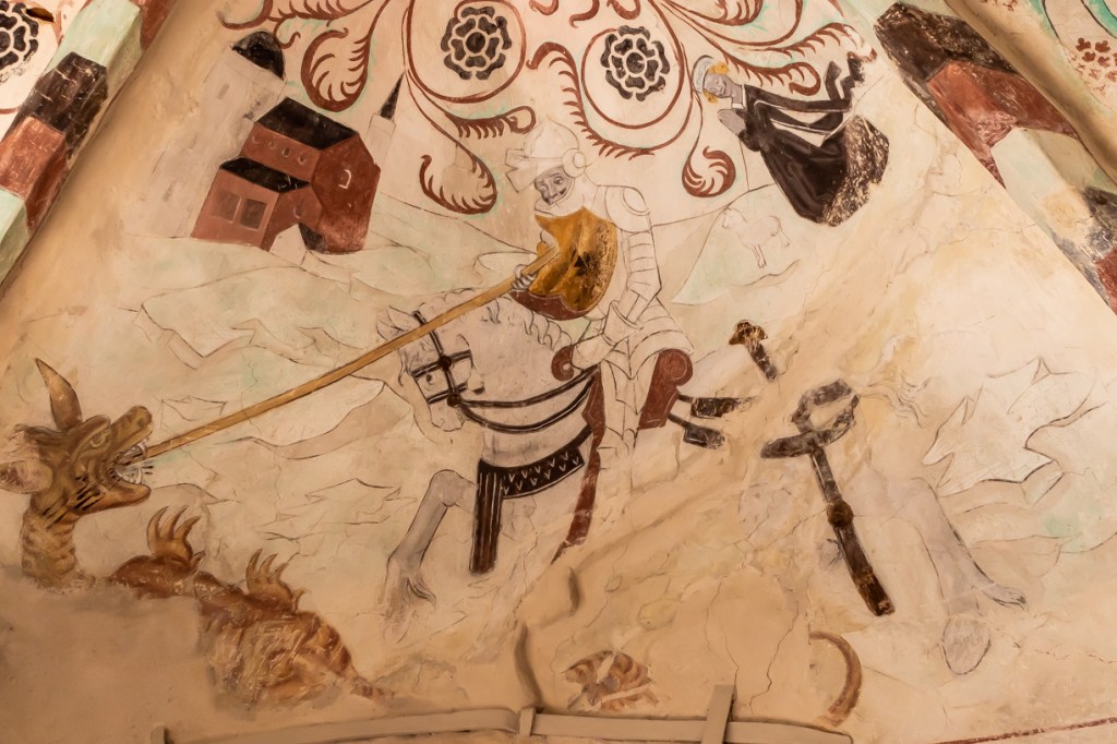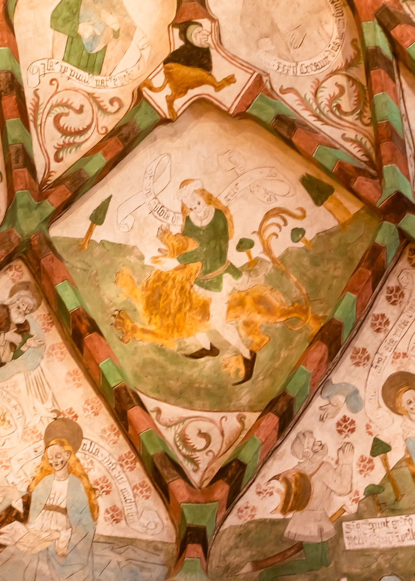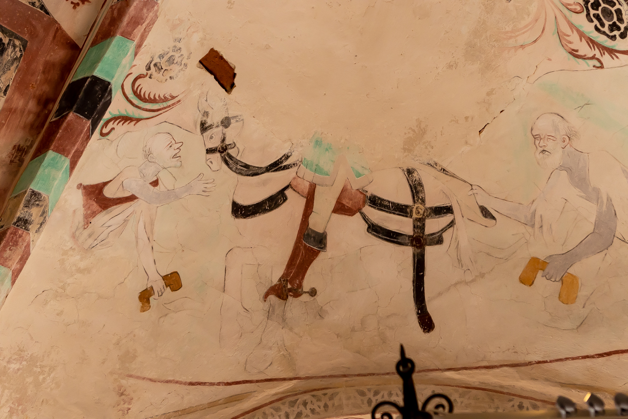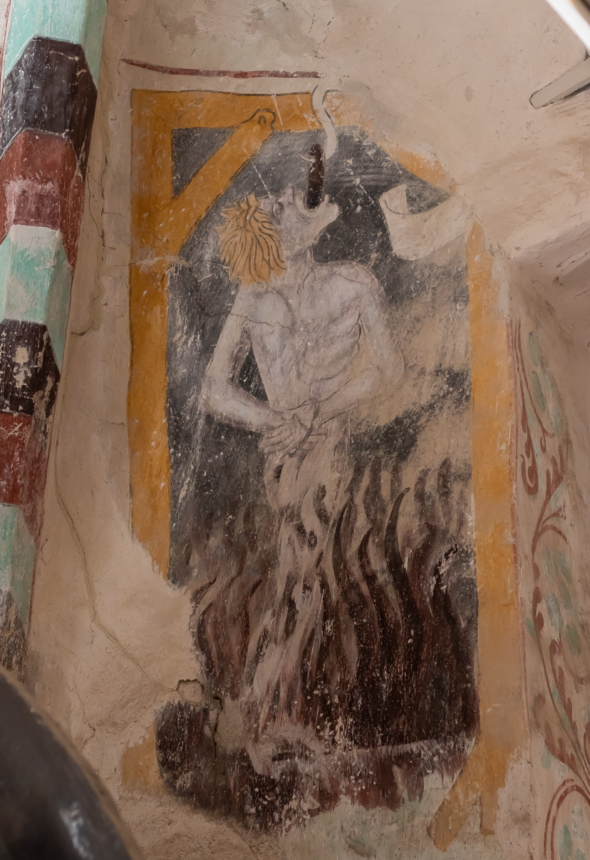 Romanska rundbågedrag vid den södra porten liksom i tornfönstret som dessutom bär klara drag av skytteglugg med den djupa och sig utåt vidgande öppningen.
