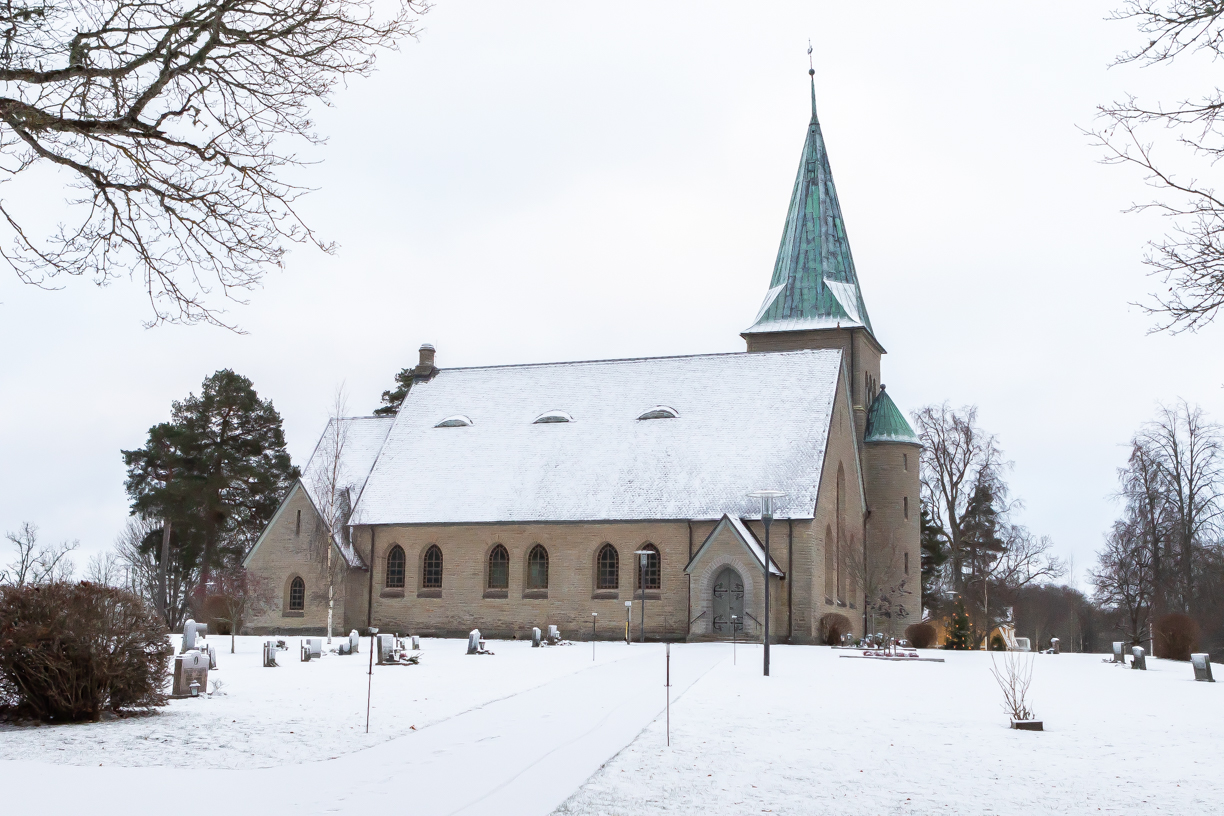 Kyrkan byggdes under 1100-talets senare del och 1200-talets början medromansk arkitektur. Västra delen av långhuset och tornet är byggda av sandsten. Kyrkan ligger på den rullstensåsen som skiljde Västra- och Östra Mosjöarna. Dessa sjöar är idag torrlagda. Kyrkan ligger längs den väg som pilgrimer vandrad på vägen till Nidarosdomen i Trondheim. Kyrkan har trots restaureringar under sina 800 år behållit mycket av det romanska grundutseeendet från medeltiden.
