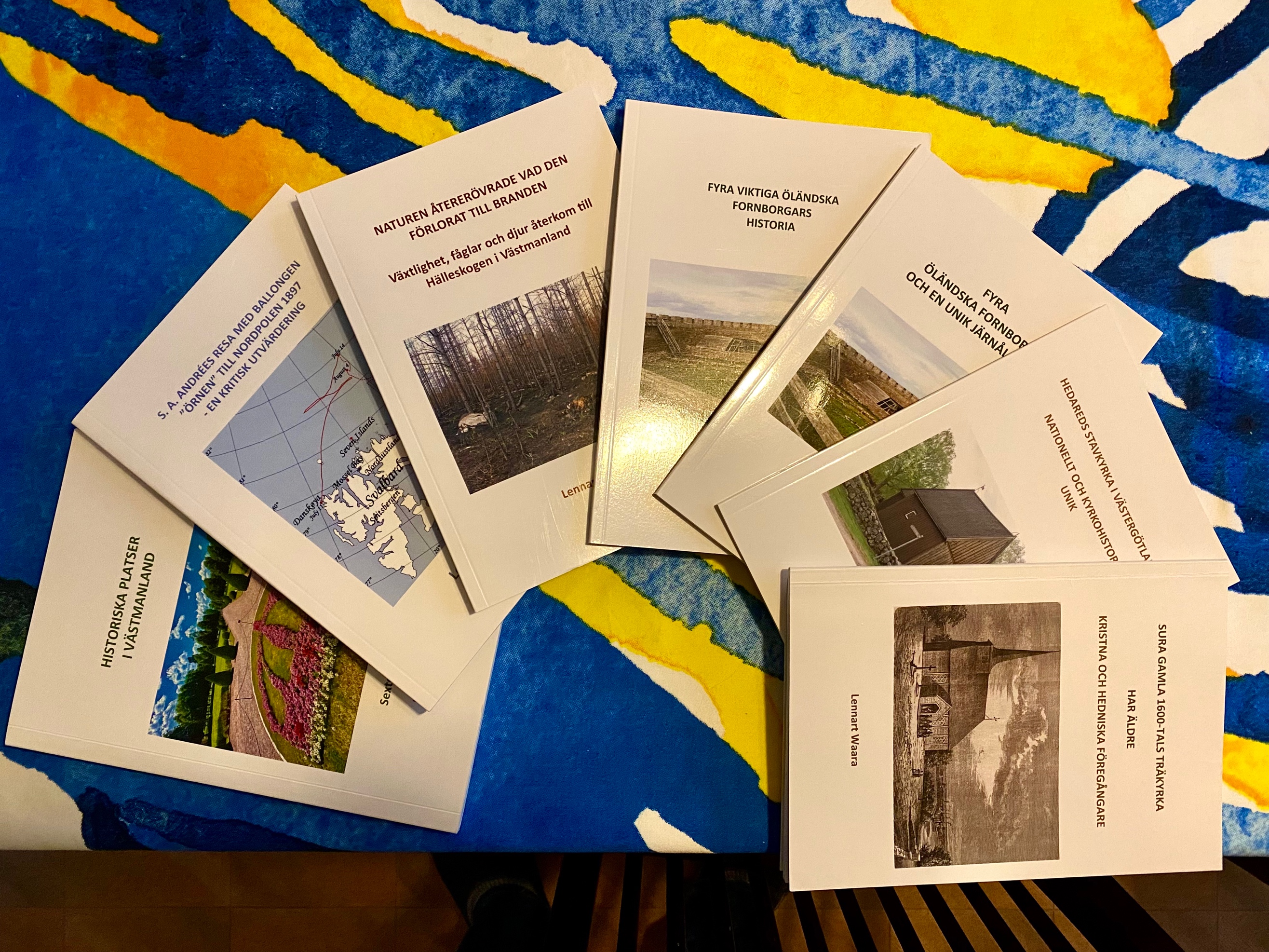 Böckerna med en gemensam layout är skrivna och publicerade 2023 – 2025 och finns att köpa på Bokus och Historiska bokhandeln Svartsjö slott. Dessutom finns boken om Hälleskogsbranden på Rånnesta bokhandel vid Tysslingen. Boken om Ölands fornborgar finns därutöver till försäljning i Borgholms bokhandel samt Naturbokhandeln Stenhusa/Öland.